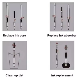 El sistema permite reemplazar fácilmente el núcleo de tinta y el absorbente interno, garantizando una escritura suave y constante.
