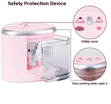 El diseño del sacapuntas eléctrico incluye una base estable y antideslizante que evita movimientos durante el uso, garantizando seguridad y precisión.